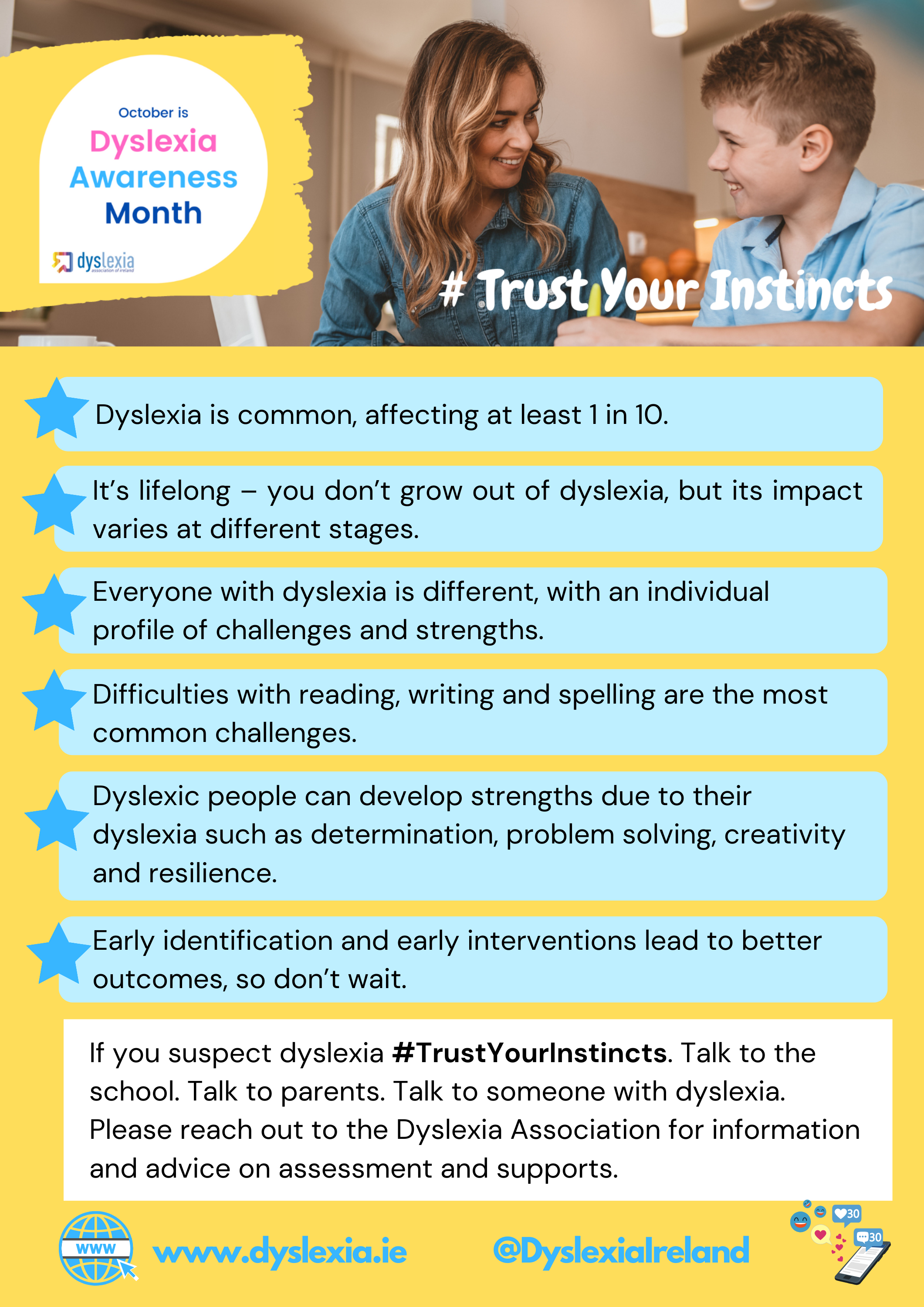 The Dyslexia Association of Ireland (DAI) will be celebrating Dyslexia Awareness Month this October, along with dyslexia organisations worldwide. Our focus this year will be on empowering people to #TrustYourInstincts.